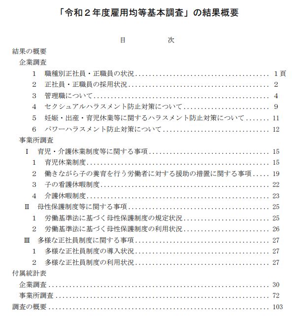 男女の均等な取扱いや仕事と家庭の両立などに関する雇用管理の実態把握を目的にした調査。
