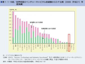 8Sep2017世界各国のベンチャーキャピタル投資額のGDP比2017年9月8日5513約1分データ解説日本は、ベンチャー企業を支援する仕組みが圧倒的に少ないのが現状です。次世代を担う技術開発を助けるためにも、もっとベンチャーへ投資する仕組みを応援する必要があります。 出典:平成29年7月7日 文部科学省 科学技術白書